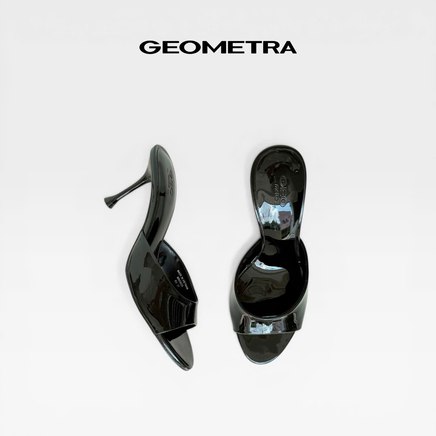 Dép cao gót hở mũi Peep Toe WDC0225 - GEOMETRA - Đen