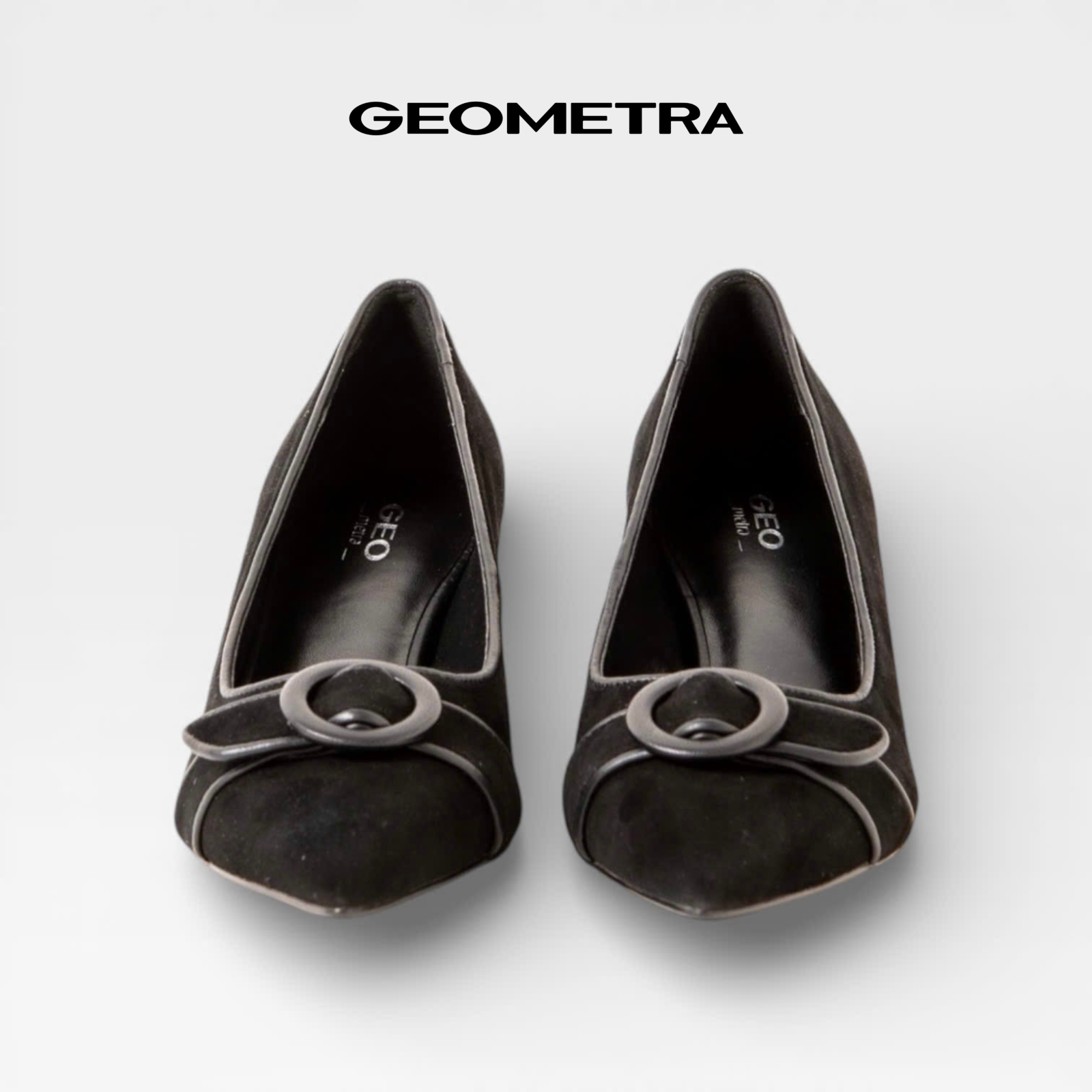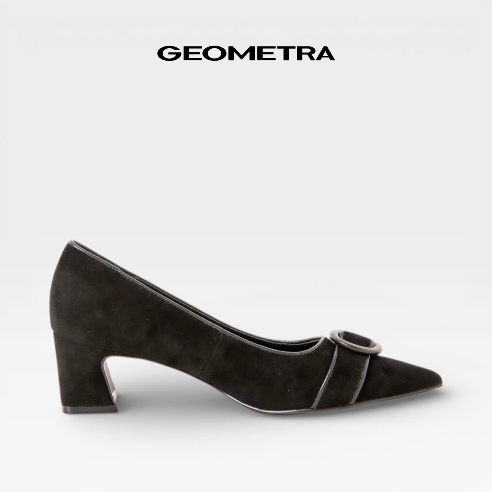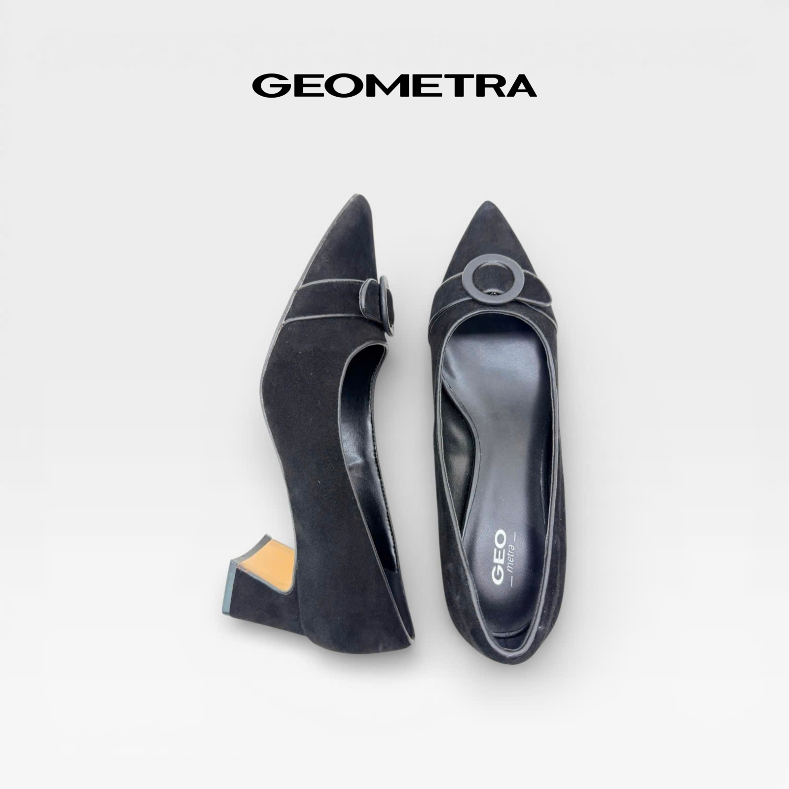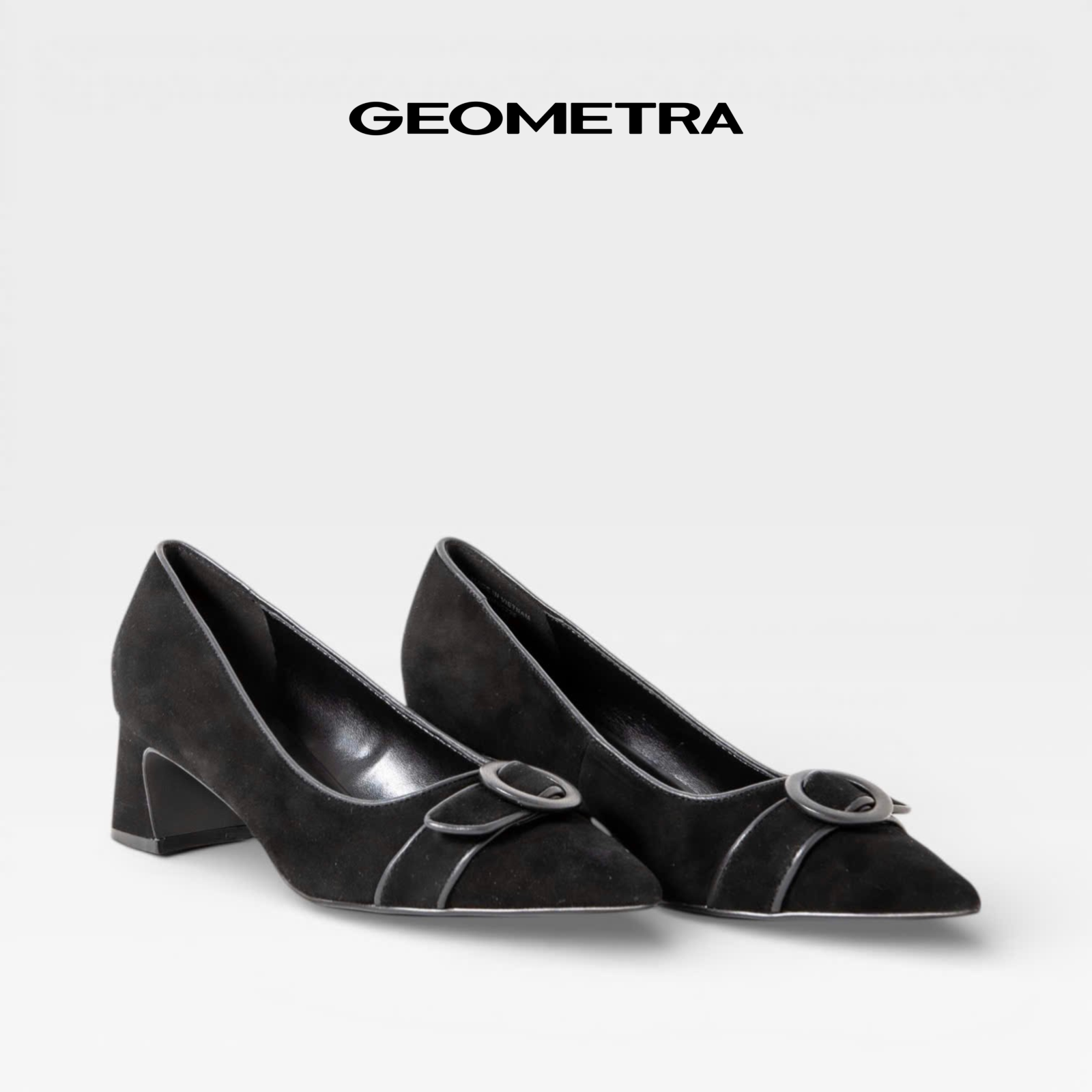 Giày Bít Mũi Nhọn gót vuông Midnight Bloom GEOMETRA WMN0225 - Giày cao gót công sở da bò lộn cao cấp - ĐEN