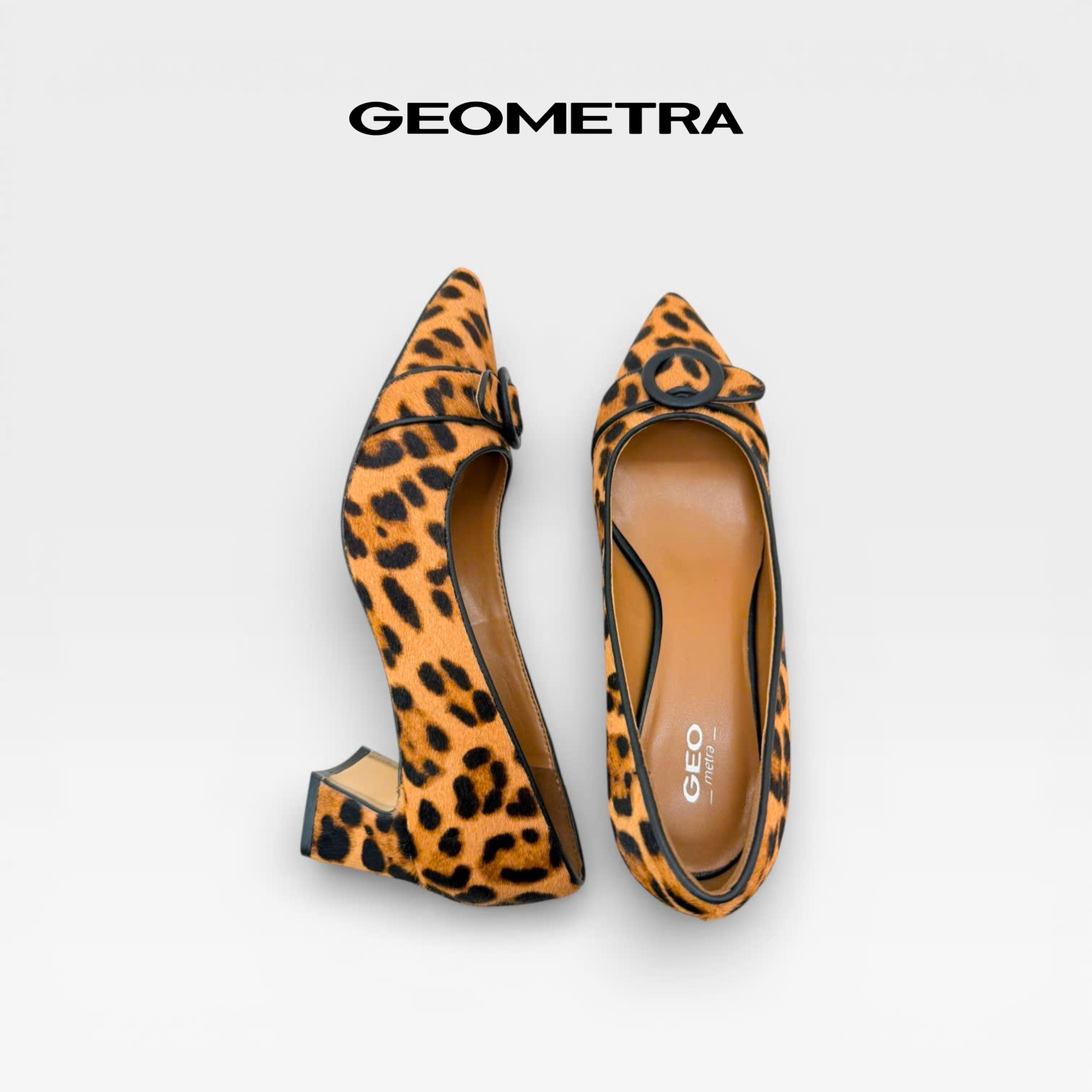 Giày Bít Mũi Nhọn gót vuông SavannaStep GEOMETRA WMN0225 - Giày cao gót công sở da bò lộn cao cấp - DA BÁO