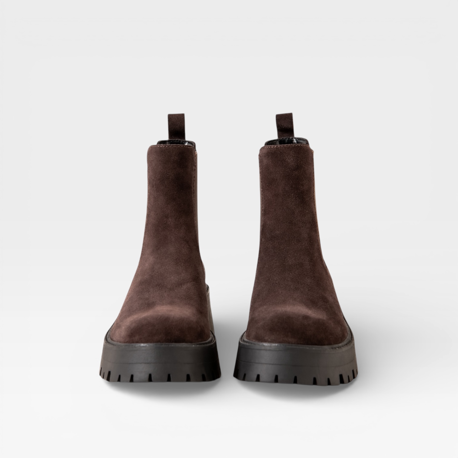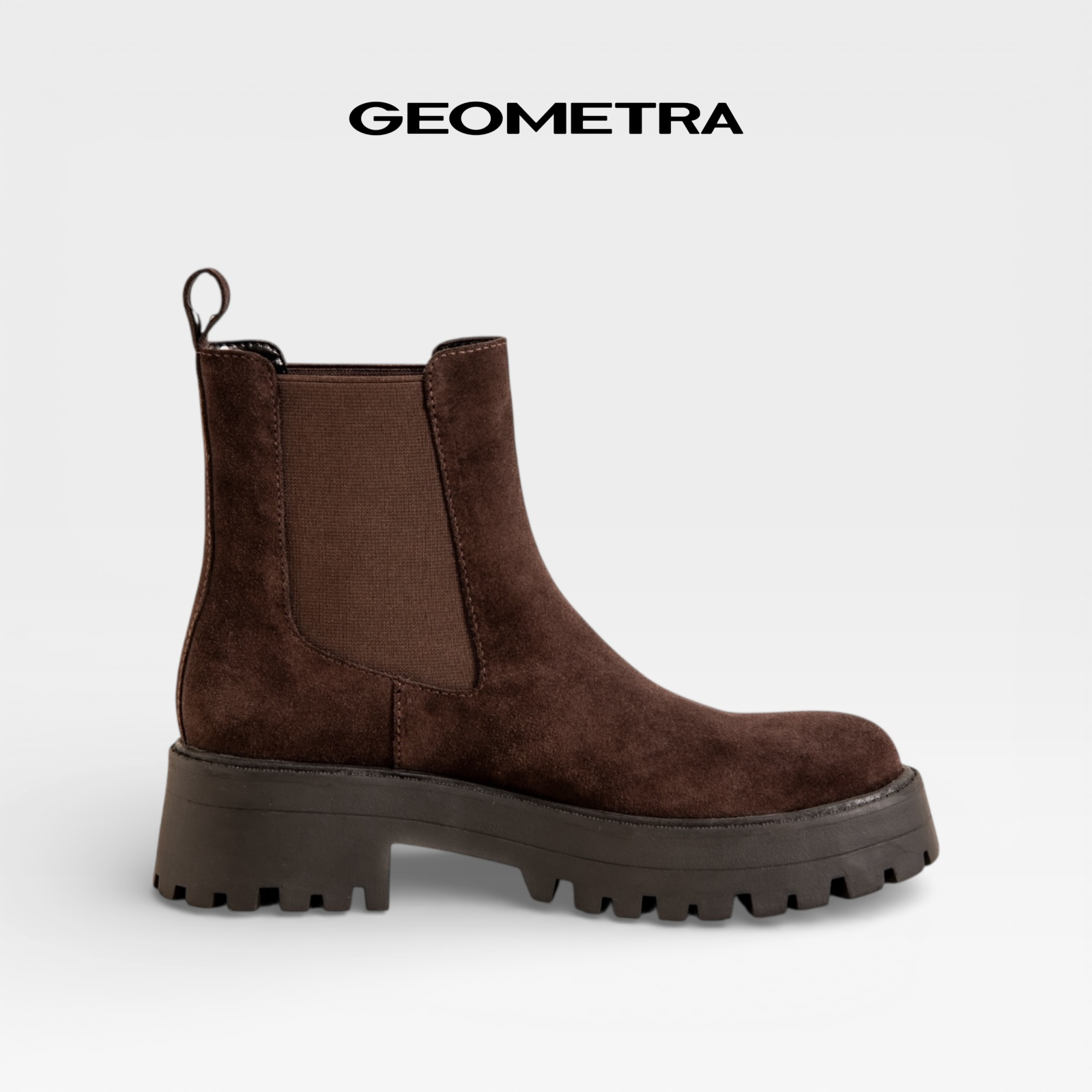 Giày Boot Nữ Chelsea GEOMETRA Terra Shade WB0125 - Giày Boot Nữ mũi tròn đế Chunky, Da bò lộn - Nâu đậm