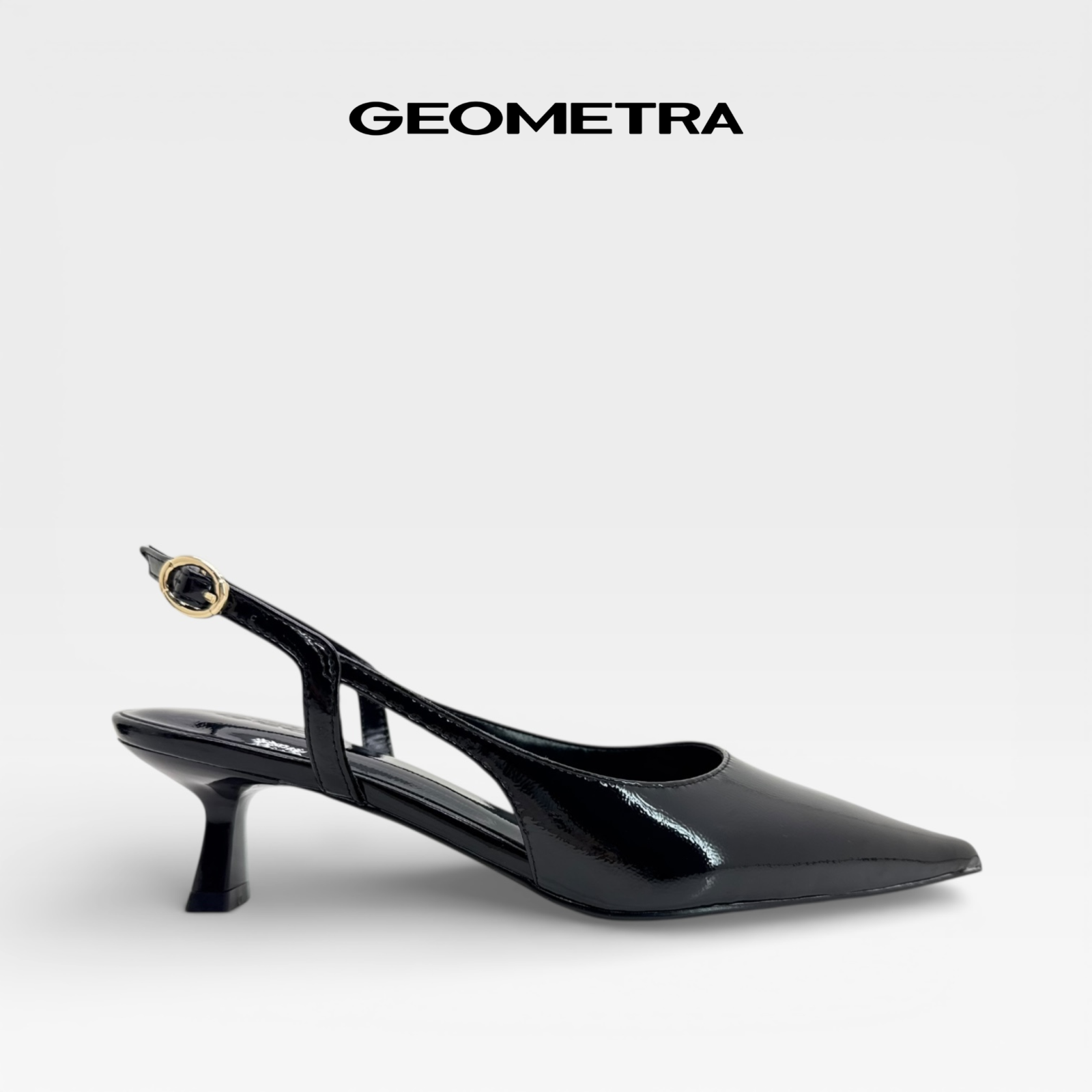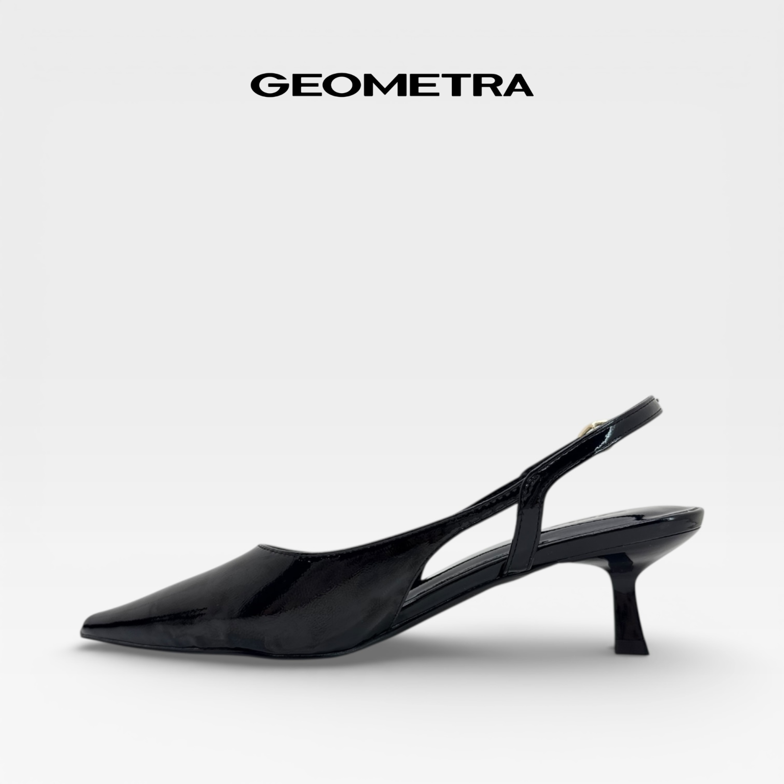 Giày Slingback Công sở GEOMETRA Moonstone WSB0325 - Giày cao gót nữ mũi nhọn hở gót, da bóng cao cấp - ĐEN
