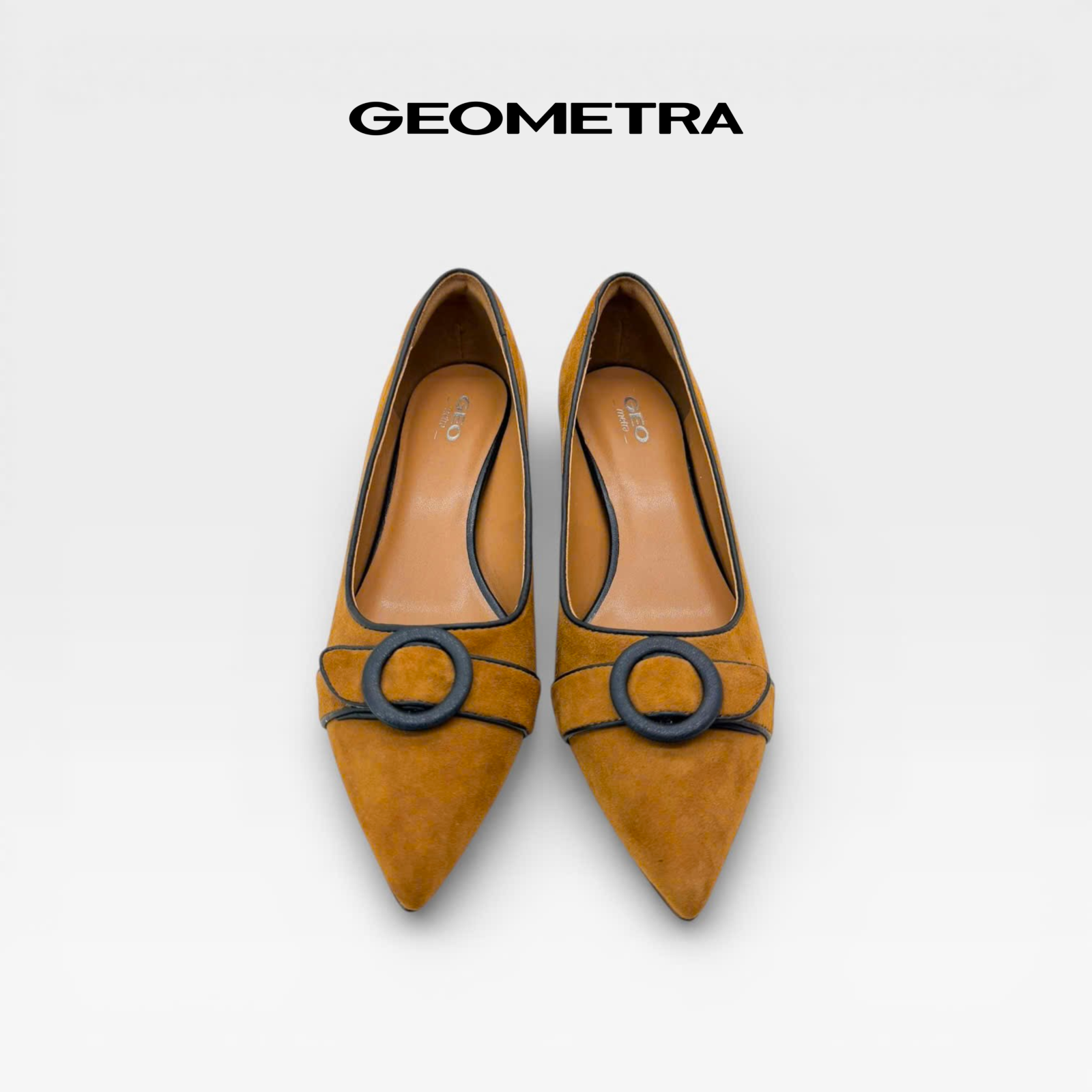 Giày Bít Mũi Nhọn gót vuông SunPetal GEOMETRA WMN0225 - Giày cao gót công sở da bò lộn cao cấp - NÂU BÒ