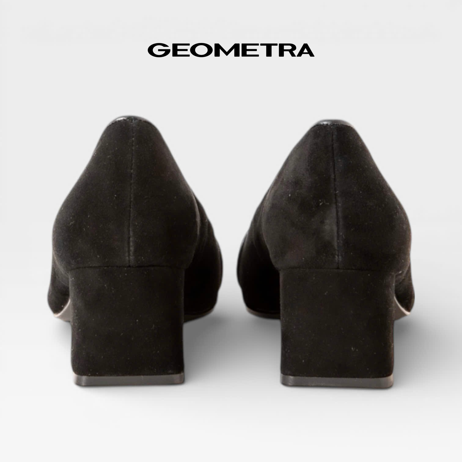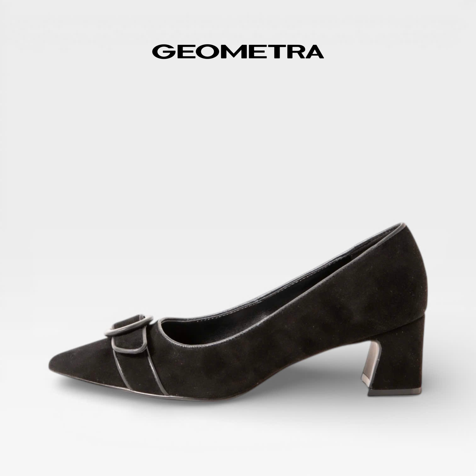 Giày Bít Mũi Nhọn gót vuông Midnight Bloom GEOMETRA WMN0225 - Giày cao gót công sở da bò lộn cao cấp - ĐEN