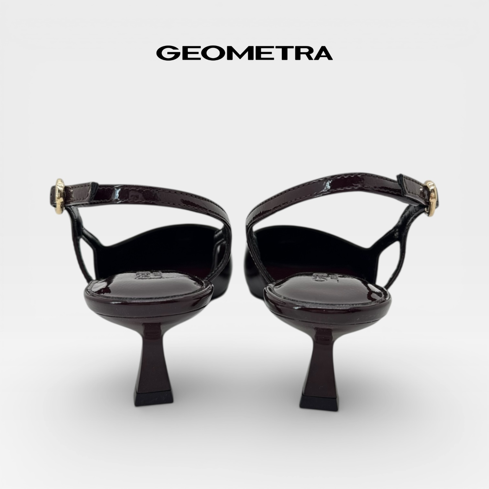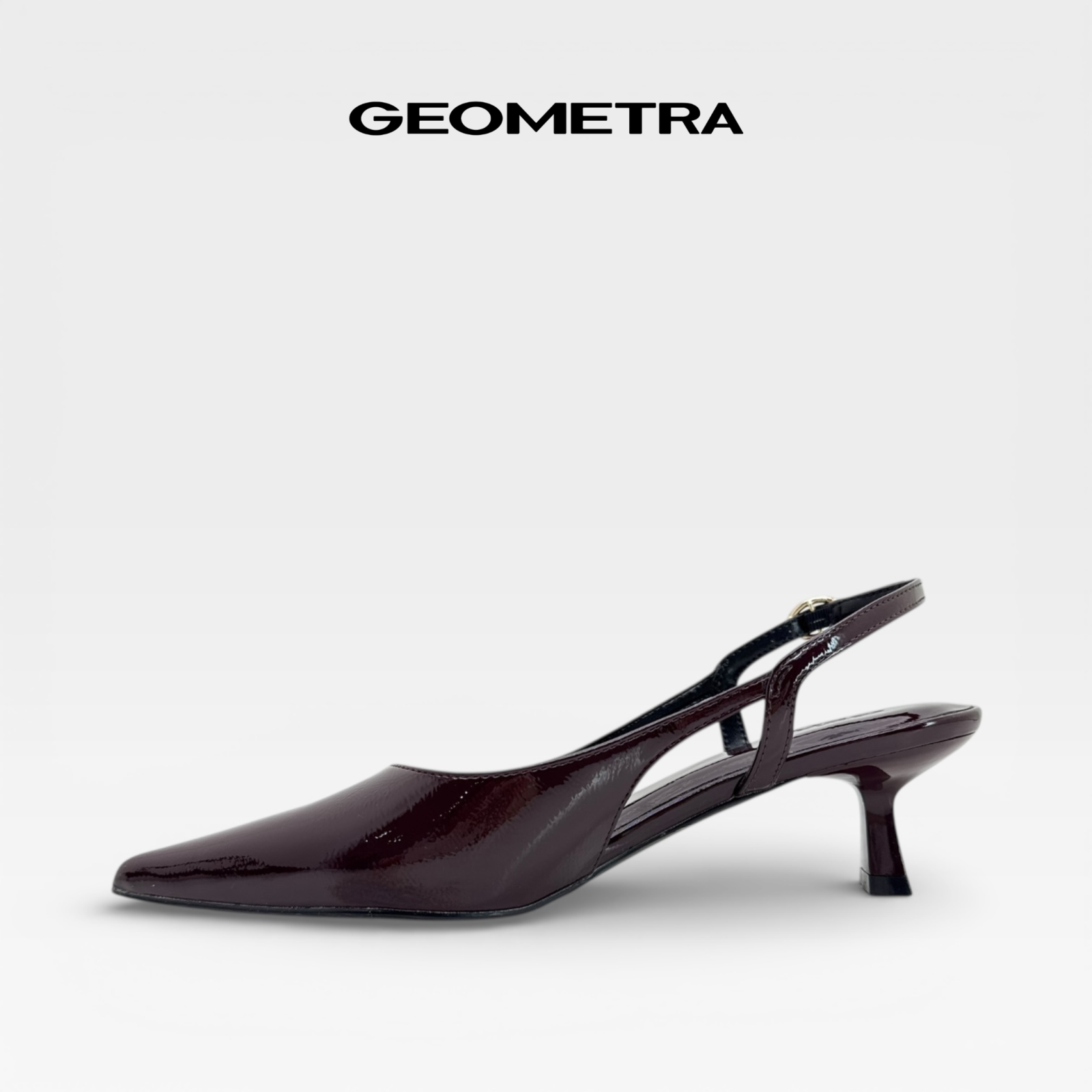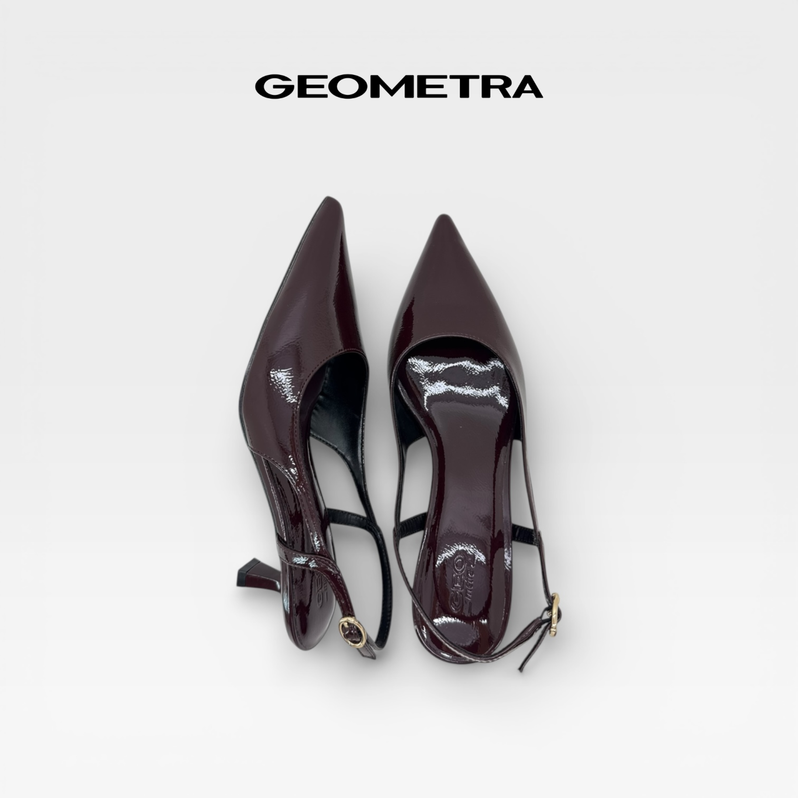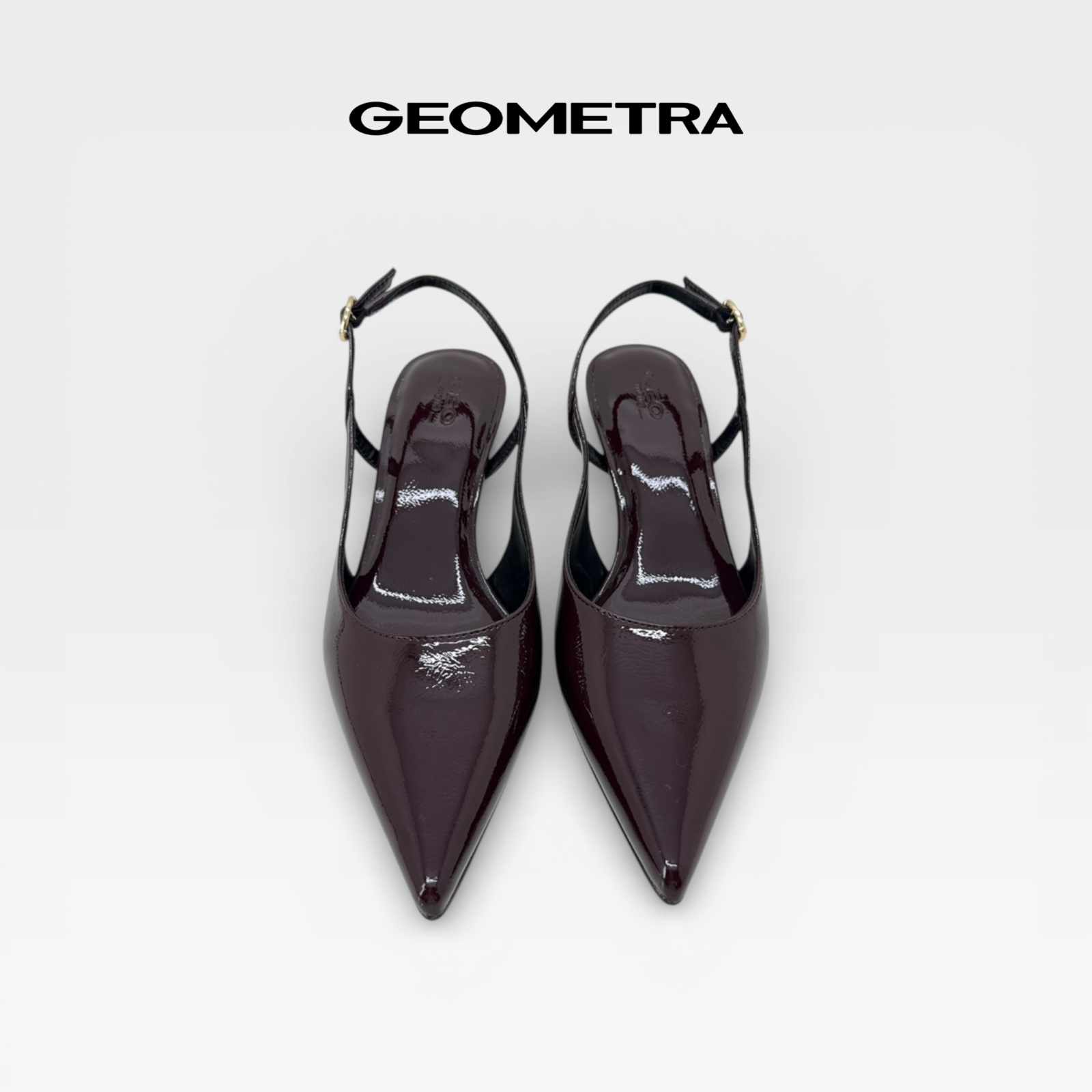 Giày Slingback Công sở GEOMETRA Burnt Ruby WSB0325 - Giày cao gót nữ mũi nhọn hở gót, da bóng cao cấp - ĐỎ MẬN